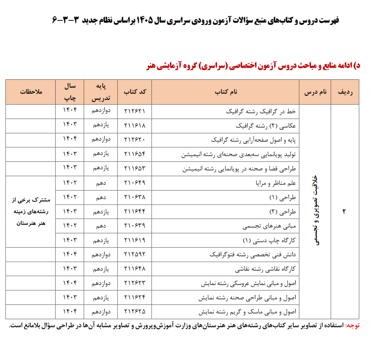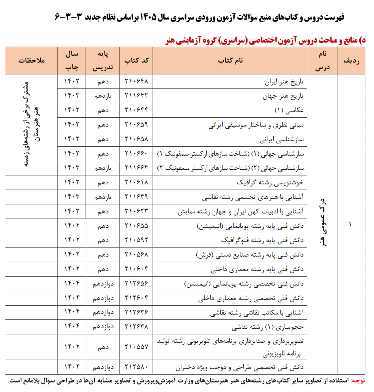تمام ۳۵ کتاب وزارتی کنکور هنر در ۳ کتاب